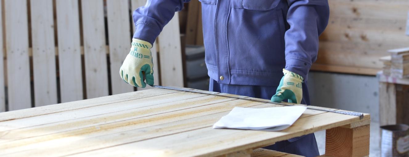 パレット組立前には、材料の寸法を改めて確認。