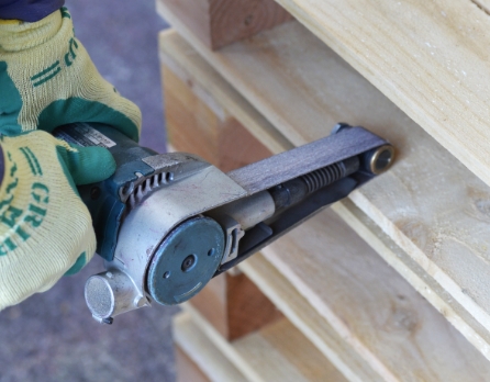 木箱にPPバンドや鉄バンドを引っ掛けるための溝を作る機械です。ズレを防止し、ガタツキを抑制します。